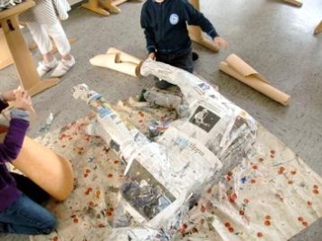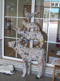Schließlich wurden die Tierfiguren mit Acrylfarben bemalt. Nach dem Trocknen wurden diese von einer Lehrerin aufeinander montiert.